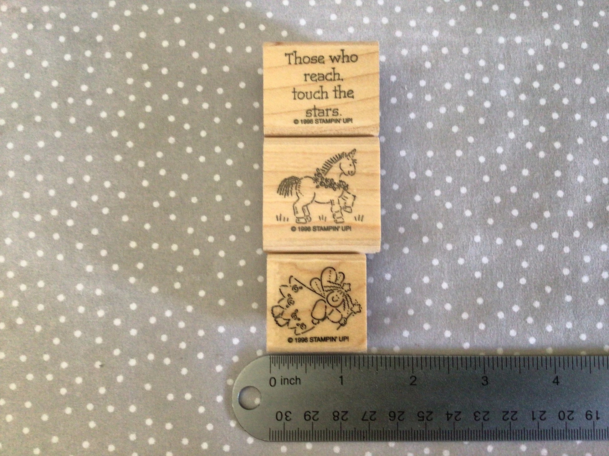 Retired Stampin Up Stamp Set! Dreams & Dragons set of 17 stamps! This set was one of Stampin Up!'s stamp sets from 1996. Wood mounted stamps. Used but in good condition.